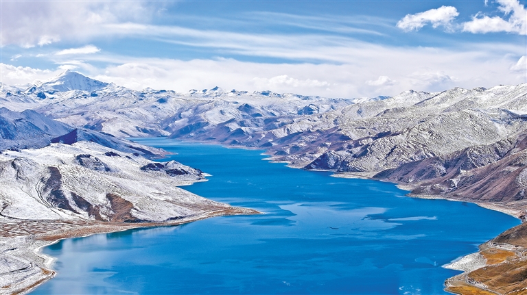 2月20日,羊卓雍错景区雪后初晴,一片银装,分外美丽。