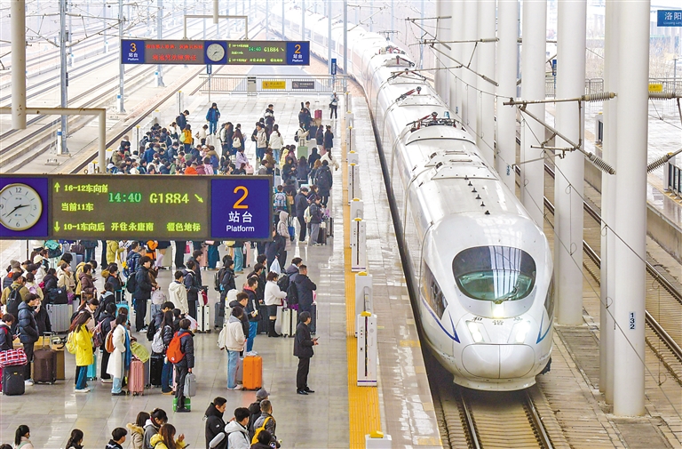 图为2月22日,旅客在河南洛阳龙门站乘车出行。 新华社发(张怡熙 摄)