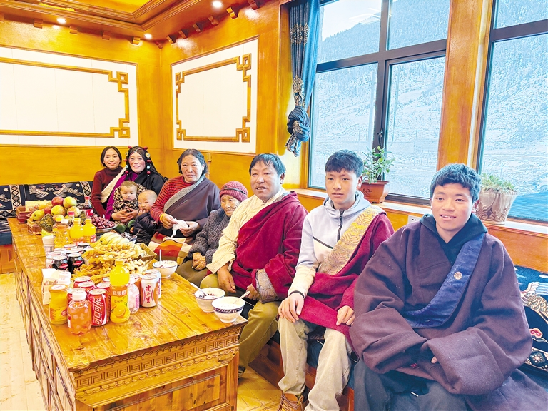 60岁的多吉大爷放牧归来,推开家门,“古突”的香气瞬间将疲惫驱散。“都到齐啦,吃‘古突’喽!”大儿子格桑多吉一边招呼,一边给家人盛上“古突”。房间里,欢声笑语不断,处处充满温情。