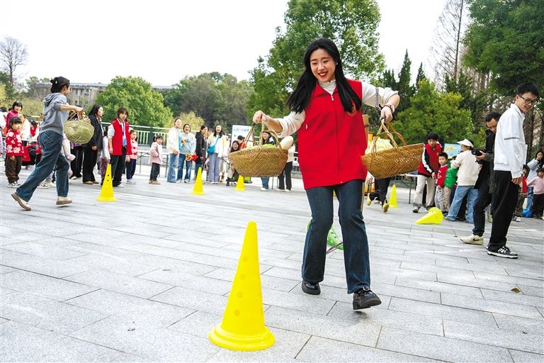 图②:2月27日,湖南农业大学的学生参加农趣运动游戏。新华社记者 陈思汗 摄