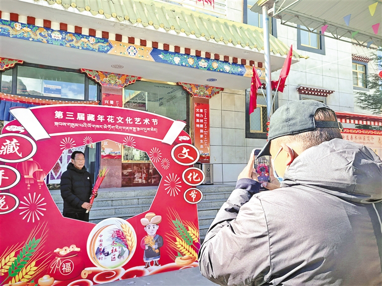 图为活动中,社区居民与“藏年花”合影留念。 本报记者 拉巴桑姆 摄