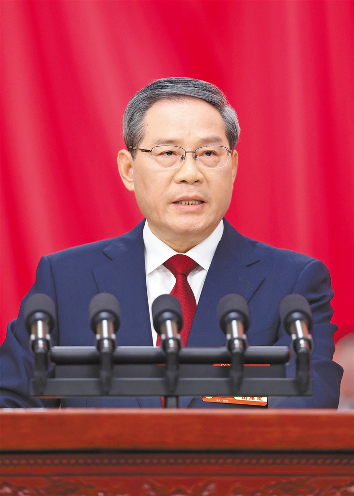 3月5日上午,第十四届全国人民代表大会第三次会议在北京人民大会堂开幕。国务院总理李强作政府工作报告。新华社记者 刘彬 摄