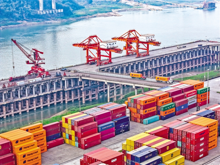 右图:2025年2月25日拍摄的重庆两江新区果园港(无人机照片)。