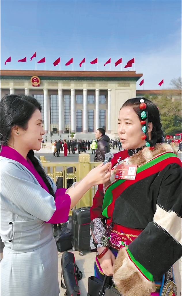 党的光辉照边疆,边疆人民心向党。“2024年,我们县迎来两件大喜事,一是县人民医院新院址投入使用,院区整洁、漂亮,医院技术装备也更新升级,进一步实现了家门口‘能看病’到‘看好病’的飞跃;二是县第二中学竣工,现代化的新校舍进一步实现了‘办好牧民家门口的优质学校的目标’。这次全国两会上,我会把这些好消息分享给其他代表委员,让他们知道在党的坚强领导下,西藏确确实实富起来、好起来了。”其德激动地介绍说。
