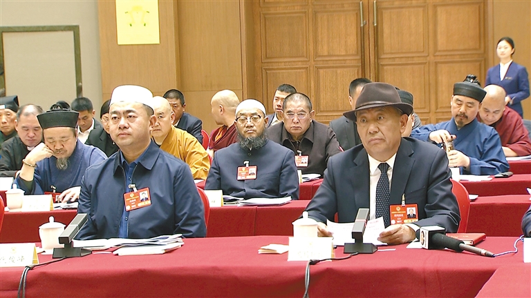 图为全国政协委员、日喀则市人大常委会副主任尼玛琼拉(右)参加所在界别小组讨论。本报记者 丹增平措 摄