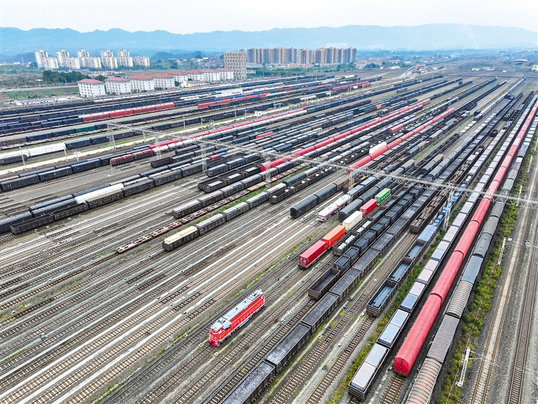兴隆场编组站位于重庆市沙坪坝区回龙坝镇,总占地5200余亩,是西南地区规模最大的铁路编组站和国内现代化水平领先的编组站之一,也是重庆中欧班列、西部陆海新通道的始发站。