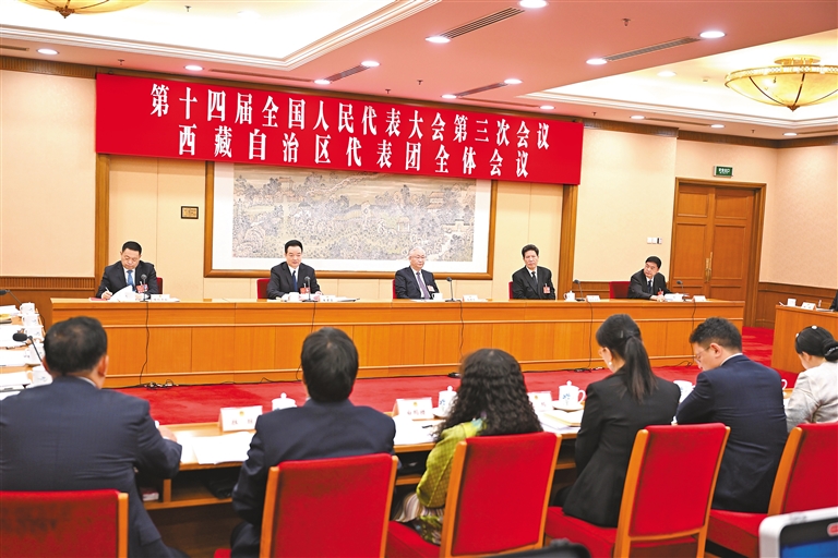 本报北京3月8日电(记者 张黎黎 张尚华)3月8日,西藏代表团举行全体会议,审议全国人大常委会工作报告。