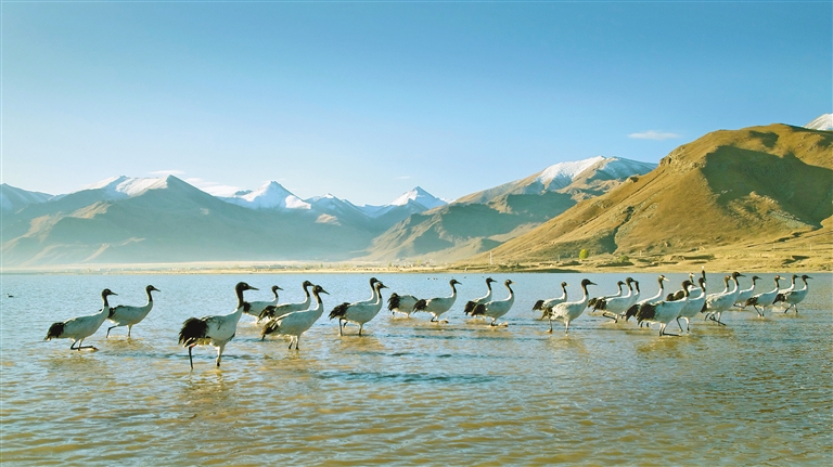 黑颈鹤作为高原上的珍稀鸟类,是拉萨与林周生态环境中的重要组成部分。它们优美的身姿和悠扬的叫声,成为这片土地上不可或缺的生态符号。中国野生动物保护协会科学考察委员会副主任委员、北京林业大学博士研究生导师李连成说:“拉萨地区作为黑颈鹤重要的越冬地,得到了当地政府部门和社会各界的高度重视,黑颈鹤越冬种群数量不断增加,活动区域不断扩大。2022年的调查数据显示,拉萨地区的黑颈鹤越冬种群数量约为3375只,其中林周县有2938只。目前,新一轮针对林周县黑颈鹤越冬种群数量的调查工作正积极推进中。”