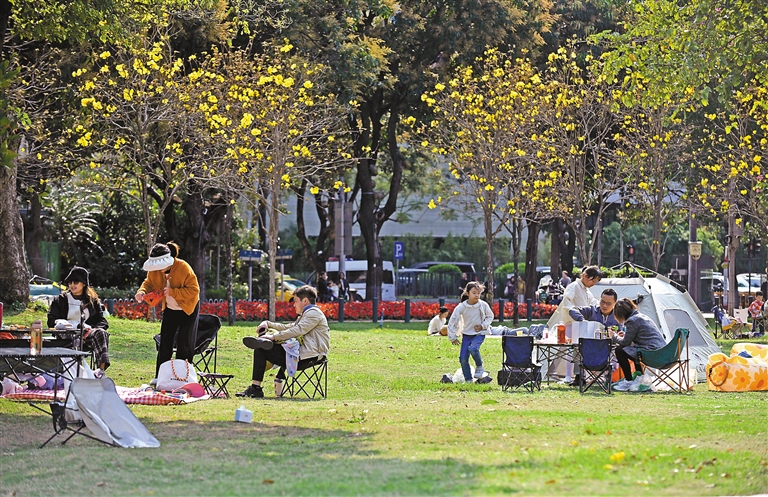 春回大地,人们纷纷走出家门,享受户外活动的乐趣。从商场超市的露营商品专区,到遍布城乡的露营基地、公园绿地,“露营经济”悄然升温。