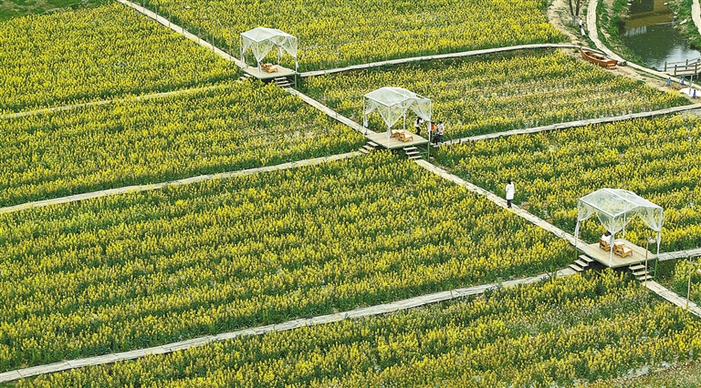 图④:3月16日,游客在云南省昆明市盘龙区双龙街道乐之营地游玩(无人机照片)。