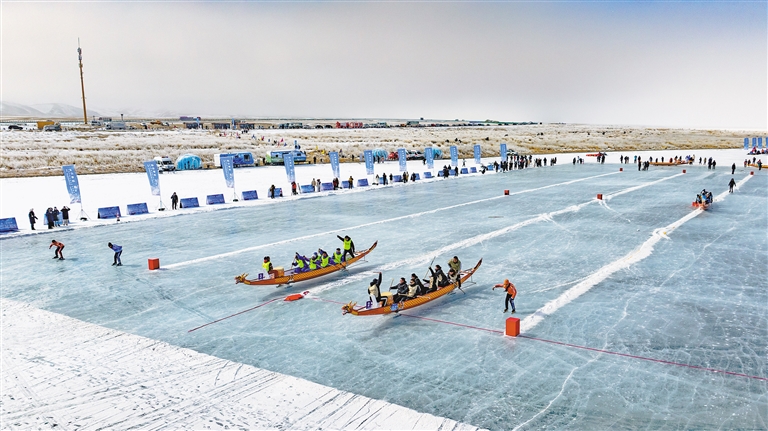 3月15日,首届赛里木湖全国冰上龙舟邀请赛暨第一届全国全民健身大赛(西北区)冰上龙舟比赛在新疆博尔塔拉蒙古自治州举行。本次比赛设置本地组和公开组两个组别共20支队伍参赛,包含100米直道竞速赛和200米折返赛两个项目。
