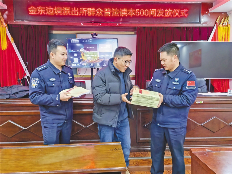 金东边境派出所组织普法读本发放仪式现场。 本报记者 王香香 摄