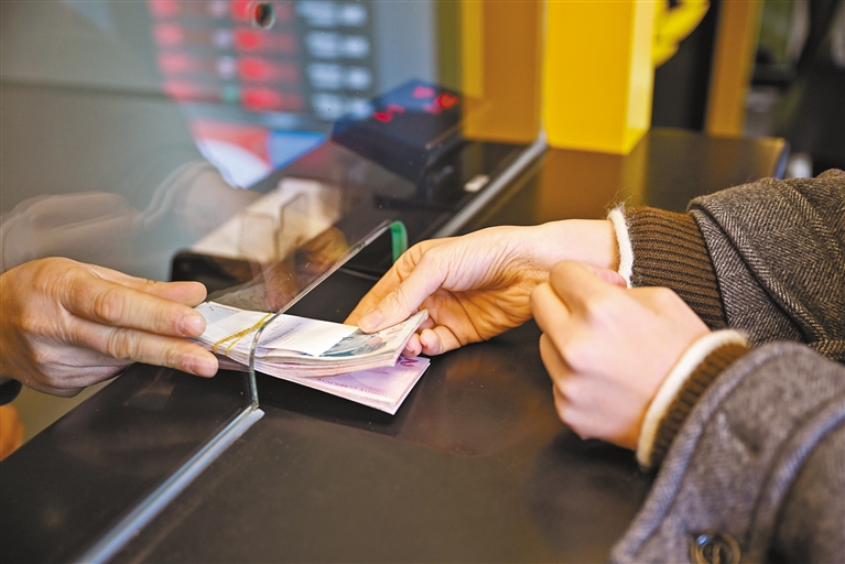 图为3月19日,顾客在土耳其伊斯坦布尔的一家外币兑换点办理业务。