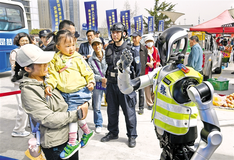 图为当日警用机器人与群众互动。新华社记者 李紫恒 摄