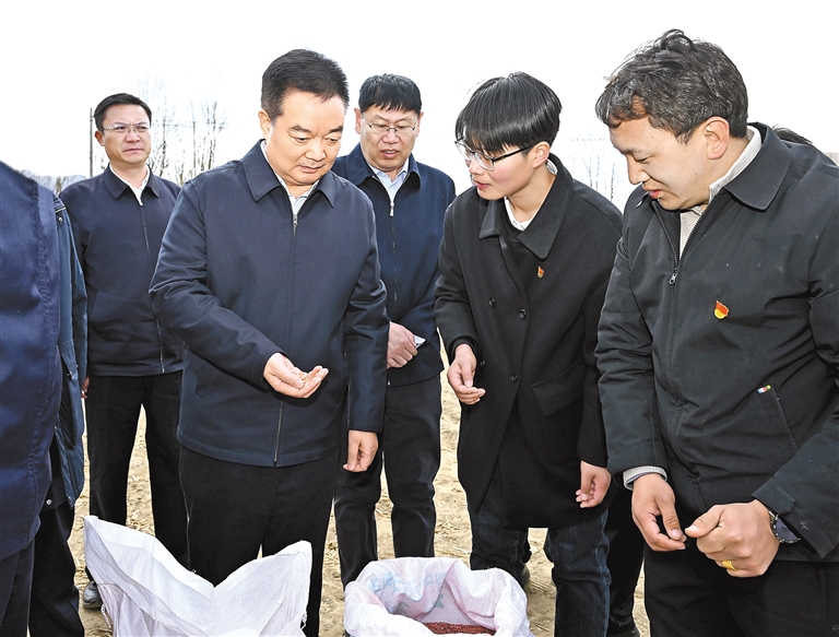 正值春耕农忙时节,在达孜区塔杰乡巴嘎雪村,农用机械正在忙碌作业。王君正走进田间地头,实地察看春耕春播情况,与基层干部群众深入交流。“一亩地的种植成本是多少?”“良种成活率是多少?”“农业机械化普及率达到什么水平?”王君正边看边问,叮嘱当地要抢抓农时高质量开展春耕春播,推进良田、良种、良机、良法、良制“五良”融合发展,为全年农业丰收开好头。塔杰乡塔捷平措农机种植农民专业合作社通过构建现代农业生产经营模式带动农户增收,王君正来到合作社,详细询问发展规模、市场拓展等情况,希望他们不断提升合作社专业化、规范化水平,强化农业科技推广应用,普及使用现代化农机农具,拓展市场业务,提高工作效率,不断壮大村集体经济,持续完善联农富农机制,让农牧民群众通过农业科技应用和产业发展增加更多收入、获得更大收益。