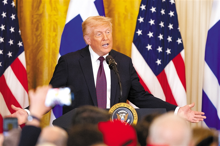 图为3月24日,美国总统特朗普在华盛顿白宫出席庆祝希腊独立日活动。新华社记者 胡友松 摄