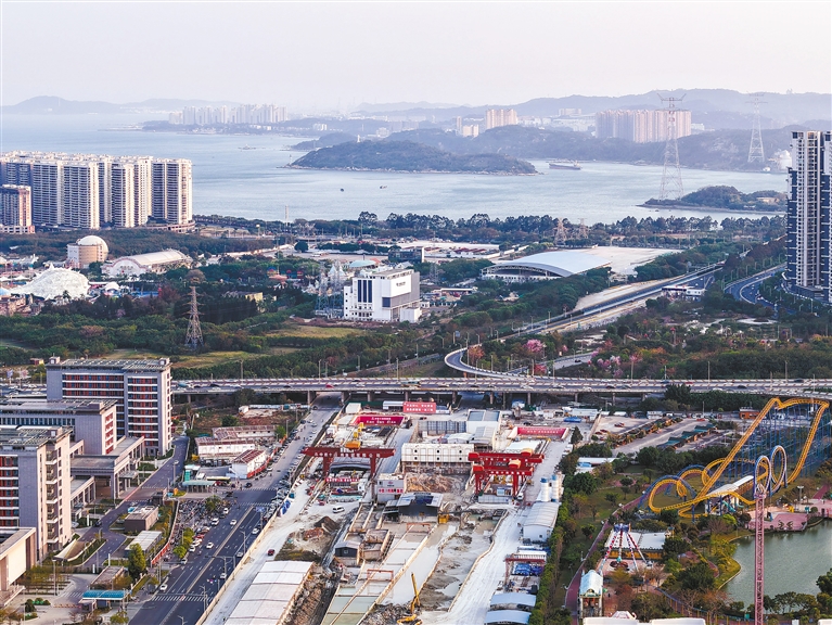 图为位于汕头湾北端的汕汕高铁汕头湾海底隧道施工现场(3月25日摄)。新华社记者 刘大伟 摄