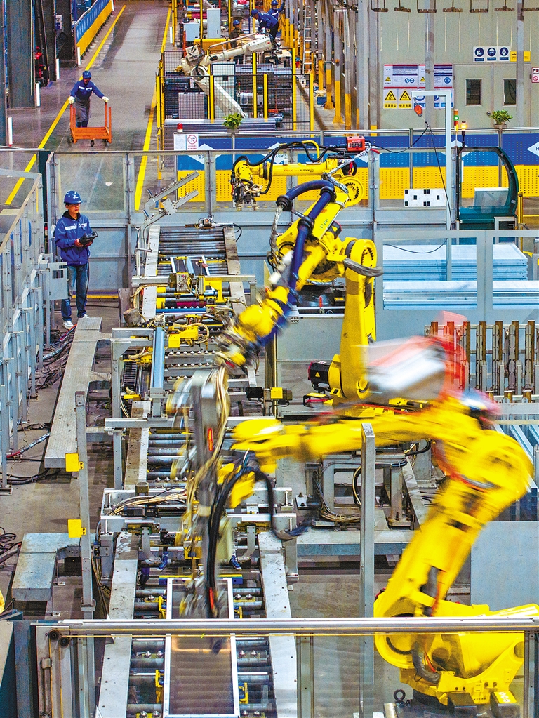 图①:3月29日,浙江省宁波宏大电梯有限公司的工人在生产线上忙碌(无人机照片)。新华社发(胡学军 摄)