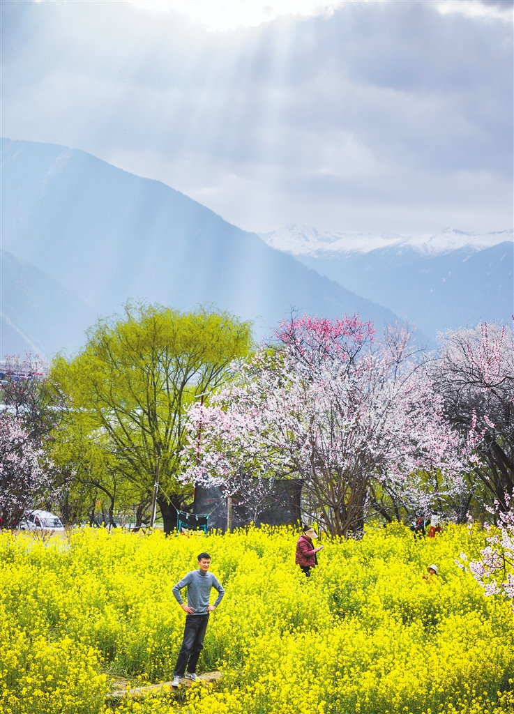 近日,随着天气回暖,林芝市巴宜区桃花竞相盛开,吸引众多游客前来赏花,感受春天的气息。巴宜区积极利用桃花这一“美丽资源”,激活当地“美丽经济”,带动游客从“过路游”到“过夜游”。据了解,今年3月巴宜区接待过夜旅游者超34.2万人次,同比增长32.68%。