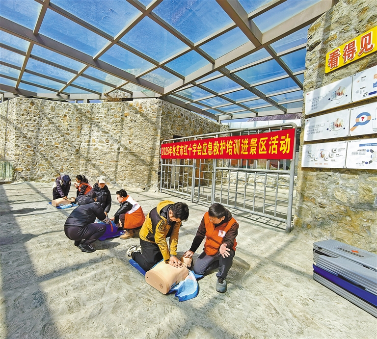 近日,林芝市红十字会邀请林芝市人民医院120急救中心医疗专家,来到米林市雅鲁藏布大峡谷、工布江达县巴松错等知名景区景点,对景区管理人员、服务人员及周边商铺经营者开展应急救护培训。
