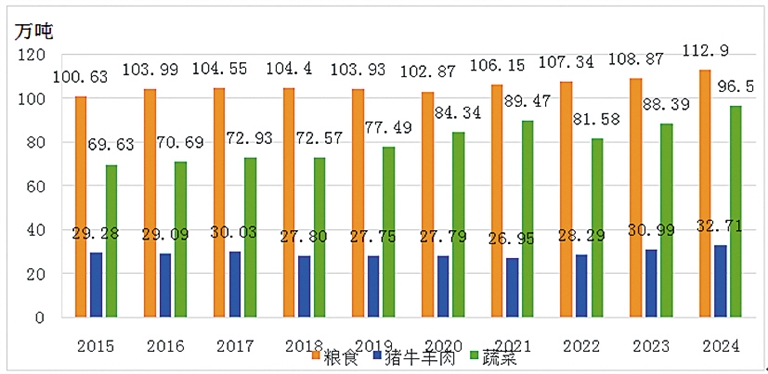 全年粮食总产量112.9万吨,比上年增长3.8%。其中青稞产量88.8万吨,增长5.2%。油菜籽产量5.08万吨,增长1.6%。蔬菜产量96.50万吨,增长9.2%。