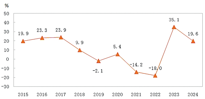 图6 2015-2024年社会消费品零售总额及其增长速度