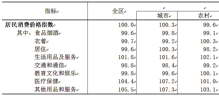 全年全区居民消费价格同比涨幅持平,工业生产者出厂价格上涨3.4%。