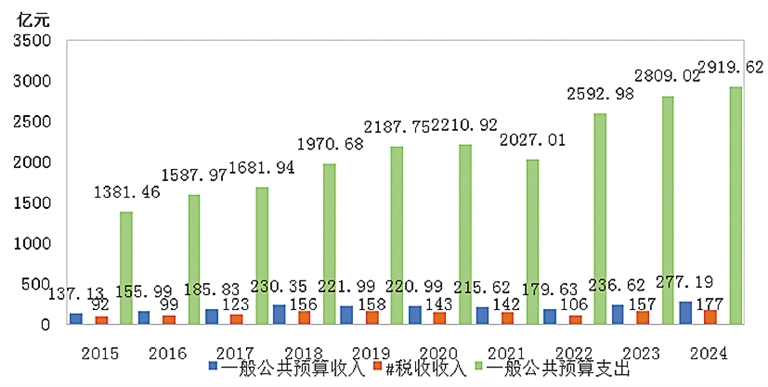 图10 2015-2024年一般公共预算收入和一般公共预算支出