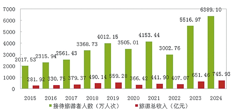 图9 2015-2024年接待旅游者人数和旅游总收入