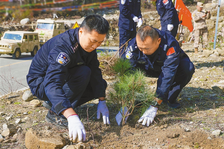 近日,西藏亚东出入境边防检查站与当地干部群众共同开展义务植树活动,以实际行动践行绿色发展理念,深化警民鱼水情谊。