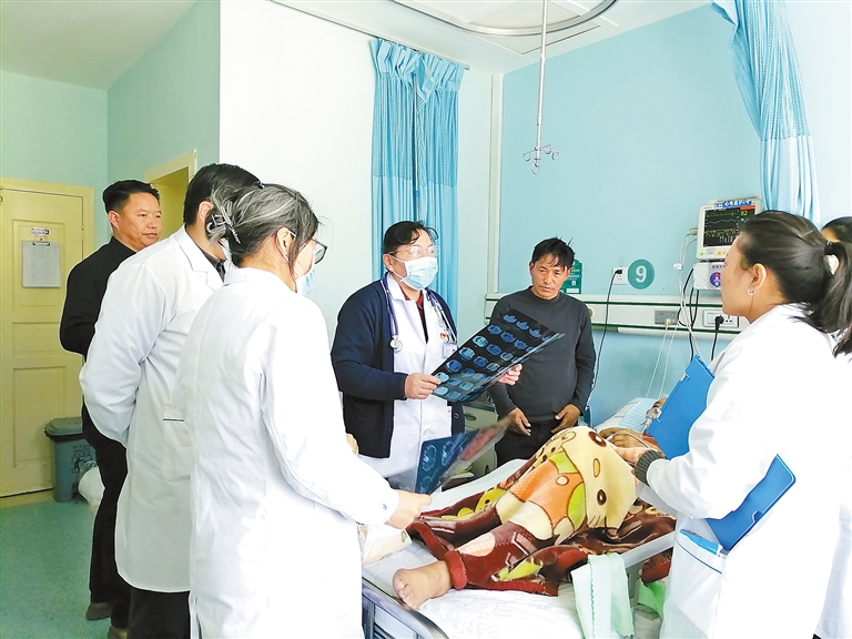 为提升干部职工健康管理水平,强化高原病防治意识,近日,墨竹工卡县卫生健康委员会邀请自治区人民医院、南京市中西医结合医院专家团队,开展“2025年墨竹工卡县干部保健讲座及门诊活动”,通过讲座、咨询、义诊,推动体重管理行动落实。 图为专家团队义诊现场。 本报记者 格桑伦珠 摄