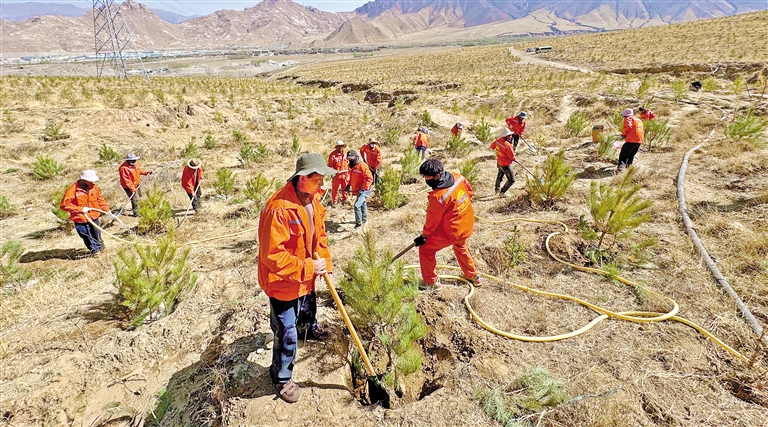 图为4月3日,拉萨市堆龙德庆区德阳村的植树造林现场。本报记者 白玛泽旺 摄