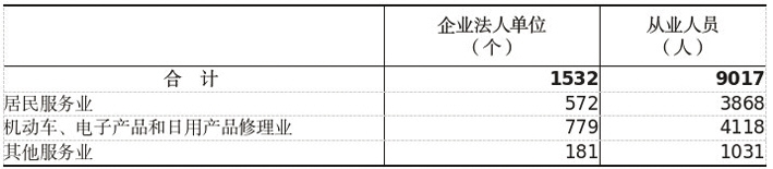 2023年末,全区共有居民服务、修理和其他服务业企业法人单位1532个,比2018年末增长130.7%,从业人员9017人,比2018年末下降10.3%(详见表5-4)。