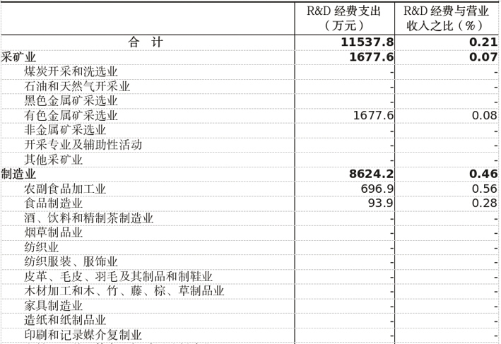 表6-1 按行业大类分组的规模以上工业企业法人单位R&D经费支出及R&D经费与营业收入之比