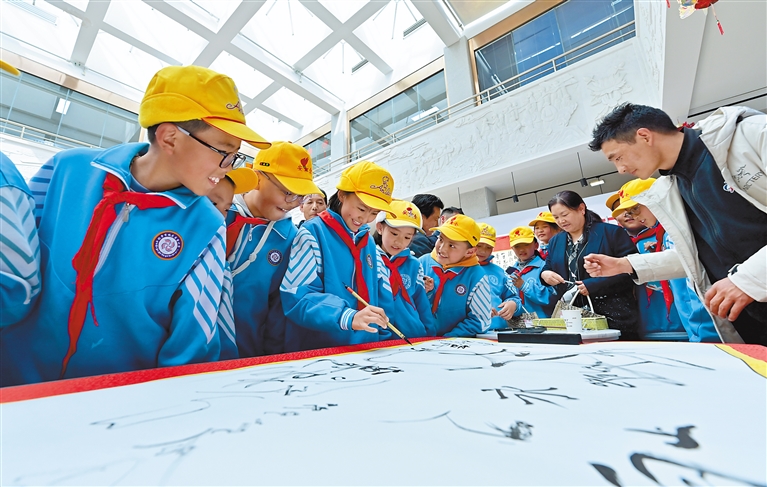 图为拉萨市城关区雪小学学生体验藏文书法课。本报记者 唐斌 王敏 摄
