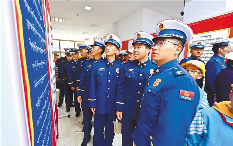 图为西藏森林消防总队消防员参观书法展。本报记者 唐斌 王敏 摄