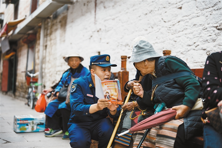 图为拉萨市消防救援支队宣传员开展消防安全帮扶指导和“敲门入户”宣传活动。本报通讯员 梁诗敏 旦增卓嘎 次仁央宗 摄