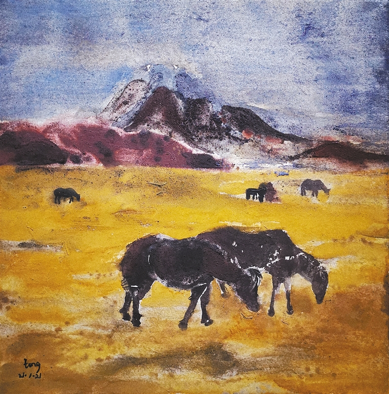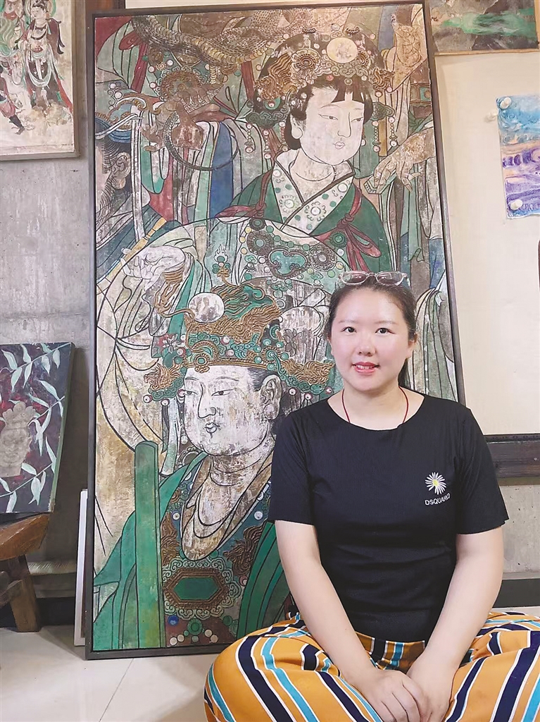 “我目前的研究及创作方向为矿、植物综合材料绘画创作,是藏族艺术和热爱的壁画艺术赋予了我更多的人生价值,赋予了我积极向上的心态和面对困难的勇气,我将继续用手中的笔描绘和书写西藏这片热土优美的画卷。”刘晓彤坚定地说。