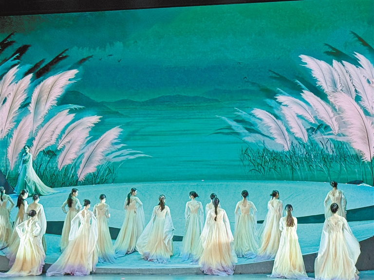 剧中的舞段既有取材于《诗经》的女子群舞《蒹葭苍苍》,也有凸显格萨尔王英雄气概的《格萨尔王》和《英雄足迹》,以及引导人们积极向上的《凤凰于飞》。观众可以近距离地领略展现汉藏农耕文化、体现天人合一宇宙观的《其耕泽泽》,以及体现民族融合的《悠悠我心》《茶城欢歌》《鼓舞中华》等作品。