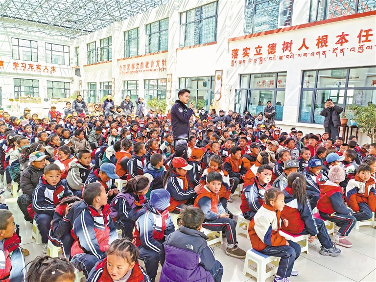 “办理边境通行证需要哪些材料?”“遭遇家暴、校园霸凌该怎么求助?”在堆纳乡中心小学的法治课堂上,民警泽成朗加正为孩子们讲解未成年人保护法。这是该所“八五”普法宣传的生动一幕。