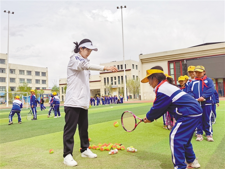活动现场,自治区网球协会派出专业教练团队,介绍了网球的起源、规则及基本动作,并进行现场示范指导。在实际操作环节,教练从握拍姿势、挥拍动作和发球技巧等对学生进行了细致示范和耐心指导。