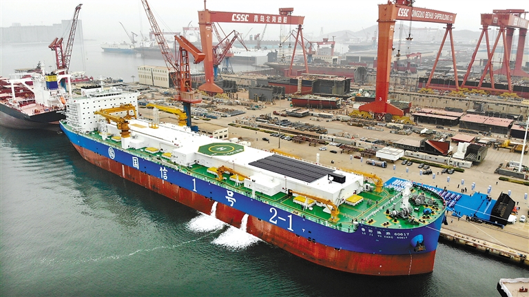 4月17日,全球首艘15万吨级智慧渔业大型养殖工船“国信1号2-1”在位于山东青岛的中国船舶集团北海造船厂交付。据了解,“国信1号2-1”将以“船载舱养”模式开展大黄鱼、鲑鳟鱼等名优鱼种养殖,设计年产高品质鱼类约3600吨。