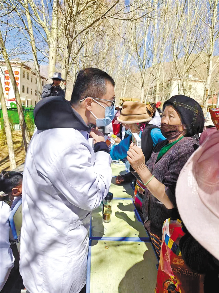 图为北京市门头沟区援藏医疗队正在古荣镇开展义诊活动。本报记者 卢文静 摄