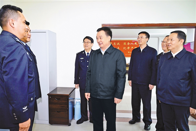 (下转第二版)(紧接第一版) 聚焦维护社会稳定和长治久安,不断提高社会治理体系和治理能力现代化水平,树牢总体国家安全观,坚持警钟长鸣、警惕常在,以科学化机制和常态化、法治化理念,把公安工作做在日常、做到经常、落实在基层;牢牢掌握反分裂斗争主动权,持续深化公共安全治理,完善防范化解重大风险隐患机制,提高预测预警预防各类风险能力,努力营造安全稳定的社会环境。聚焦服务高质量发展,完整准确全面贯彻新发展理念,坚持“三个赋予一个有利于”总要求,坚持一切从实际出发,更好统筹发展和安全、开放和安全,持续优化法治化营商环境;树立大抓基层鲜明导向,扎实做好基层基础工作,把群众身边的小事当作各级公安机关的大事来抓,既用好科学技术,又发挥好基层主观能动性和创造性,真正把好事办好、实事办实,不断增强各族群众的获得感幸福感安全感。聚焦筑牢国家生态安全屏障,严格落实青藏高原生态保护法,严守生态保护红线,支持生态环境保护和绿色发展,依法严厉打击各类破坏生态环境和危害生物安全的犯罪活动,扎实推进美丽西藏建设。聚焦强边富民,健全党政军警民合力强边固防机制,提升智慧边防建设水平,着力构筑维护国家安全的钢铁长城。持续深化公安改革,总结经验、巩固成果,坚持向科技要警力、要战斗力,深入实施科技兴警三年行动计划,大力加强智慧公安建设,不断提升全区公安工作现代化水平。