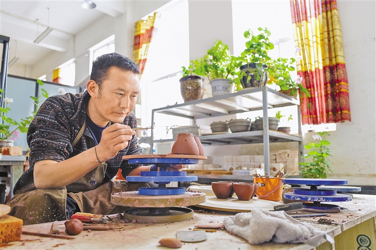 图为察雅县香堆镇明亮民族手工艺品制造有限公司的手工艺人在制作陶瓷。 本报记者 丹增群培 摄