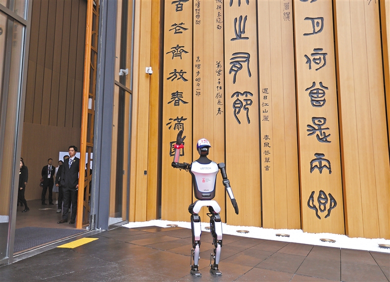 中国和日本是一衣带水的近邻,两国交往历史源远流长,留下许多友好交流的佳话。在中国馆通往二楼展厅的路上,有一段名为“青山明月”的长廊。长廊的一面是一幅动态水墨画,另一面是一个回顾中日两国友好往来历程的木雕艺术作品。日本遣唐使阿倍仲麻吕与中国唐代诗人李白的友谊;首批中国旅日大熊猫“康康”和“兰兰”来到东京上野动物园掀起“熊猫热”;中国帮助日本拯救朱鹮种群成为生态保护合作范例;中日两国著名动画形象孙悟空与阿童木并肩而行……与中日友好往来相关的重要人物和珍贵记忆在木雕上被生动刻画,彰显中国讲信修睦、亲仁善邻的交往之道。