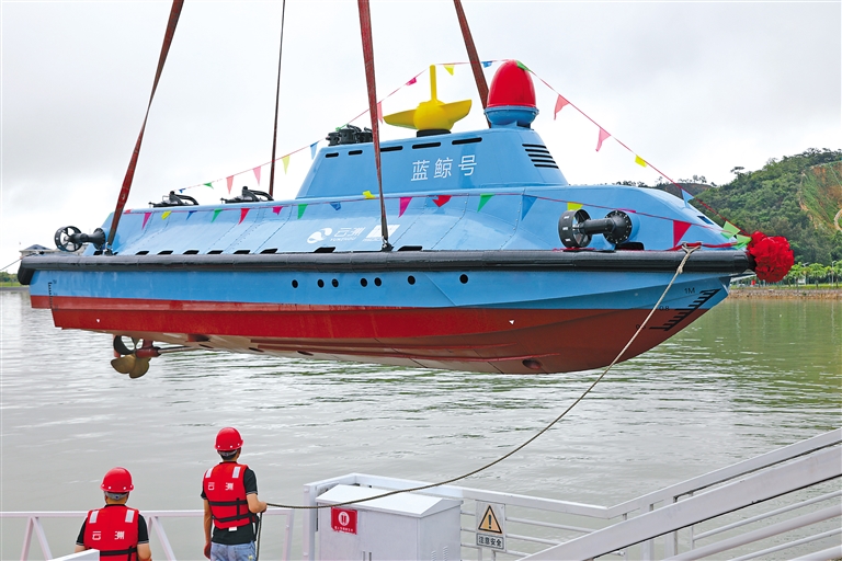 “蓝鲸号”高速可潜无人艇28日在广东珠海下水。