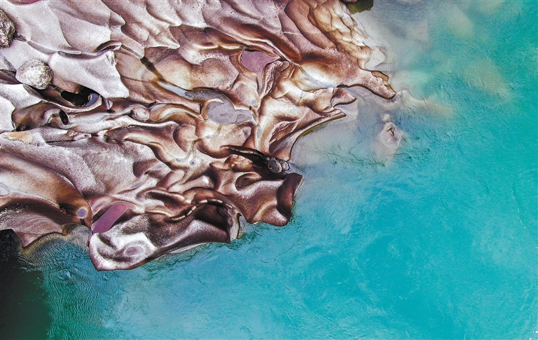 这种水流“打磨”岩石的地质景观实则是“冰臼”的一种形态,是千万年前冰川运动的遗迹。由于冰川作用,巨厚冰层的封闭覆盖,让冰川融水沿着冰川缝隙向下流动,在冰层的巨大压力下,呈“圆柱体水钻”方式,向下强烈冲击、游动和研磨,从而改变了岩体的面貌,形成圆润细腻的水磨岩。