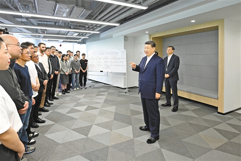 在“模速空间”3层,一场以“下一代智能体的自主进化”为主题的沙龙正在举行。习近平高兴地参与进来,同现场青年创新人才亲切交流。大家纷纷向总书记汇报所在团队开展人工智能技术研究和产业应用的收获体会。习近平对大家说,人工智能是年轻的事业,也是年轻人的事业。我们正在全面推进强国建设、民族复兴伟业,正是年轻一代展示才华、大显身手的好时候。实现中华民族的伟大梦想,寄希望于年轻人。大家要怀爱国之心、立报国之志、增强国之能,把个人奋斗同国家前途命运紧紧联系在一起,跑好历史的接力棒,在推进中国式现代化的宽广舞台上绽放绚丽的青春光彩。
