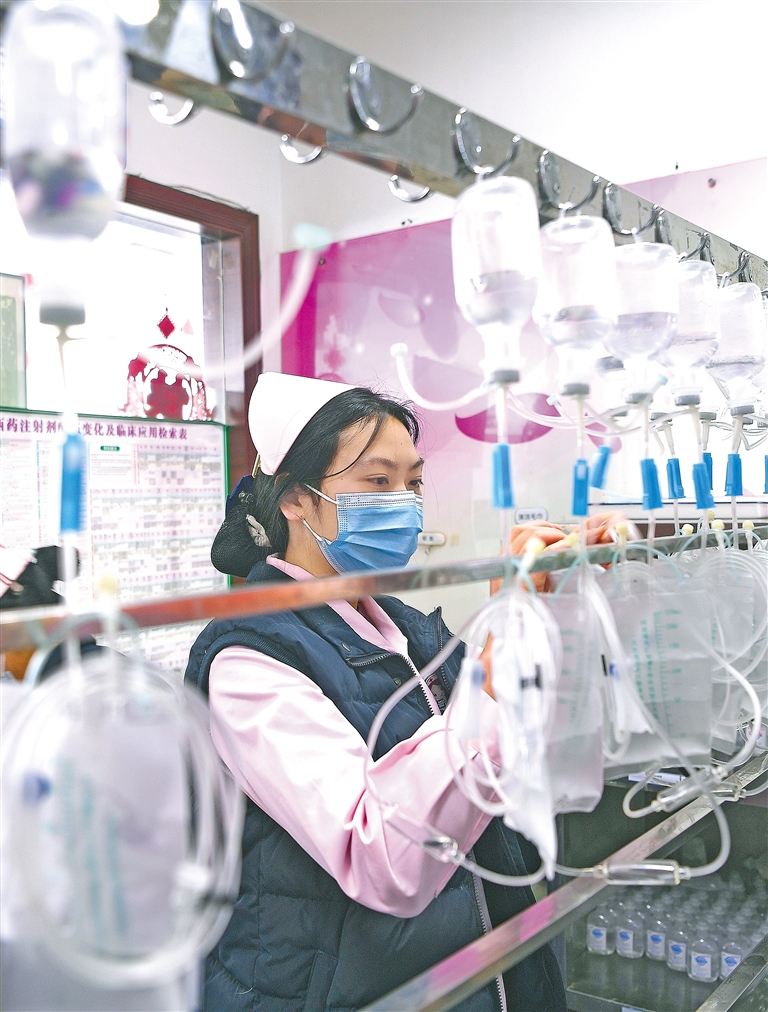 图为自治区人民医院门诊医护人员在操作输液装置。本报记者 洛桑 摄